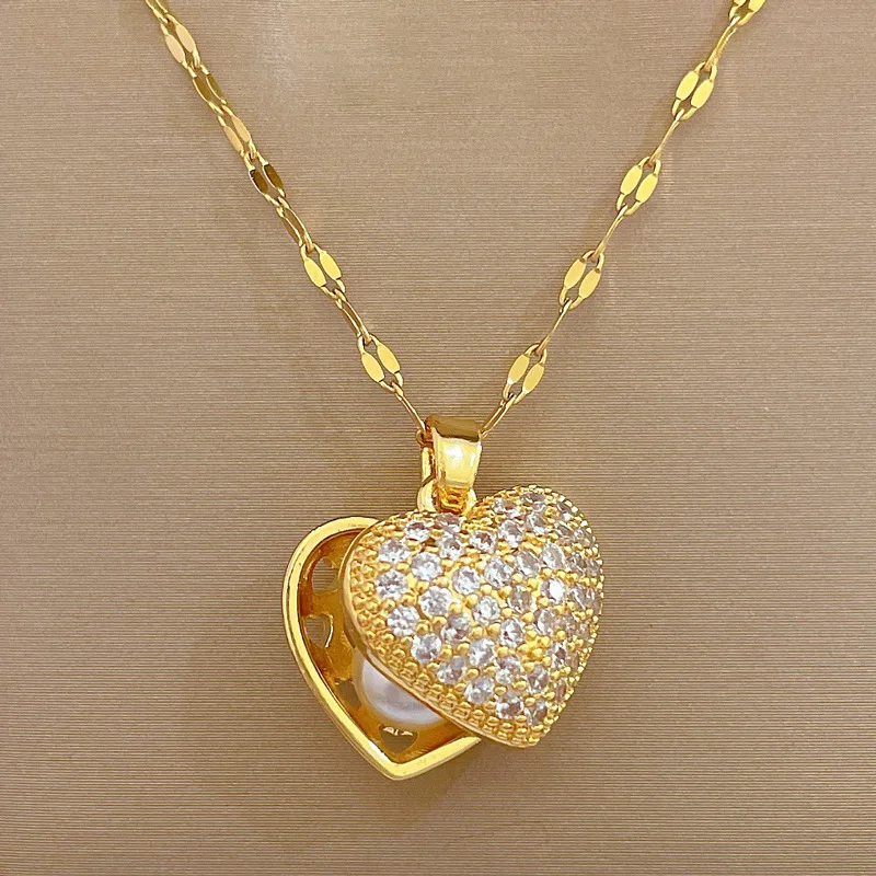 Exquisite Micro-inlaid Heart Pearl Necklace, Fashion and Cute, Light and Luxurious Hollow Stainless Steel Pendant
