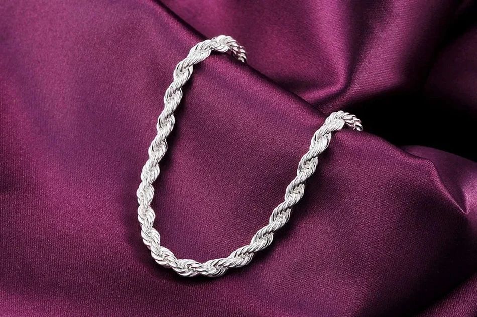 Fashion charm 925 Sterling Silver Bracelet for man woman 4MM Twisted rope chain fine jewelry Wedding party Christmas gift